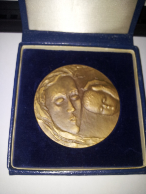 Bronzová plaketa 1888 - 1988 vydaná ke stému výročí fakultní porodnice v Brně; M.Slezák 87