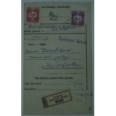 kompletní formulář s frankaturou SL 19 a SL 22; úřední razítka a záznamy