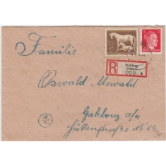 R dopis se známkou MICHEL 899, Hnědá stuha, GABLONZ 4.9.44; hezké