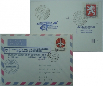 sestava 2 dopisů, 1988, přepraveno parašutisty; Česko 1994, přepraveno vrtulníkem; hezké