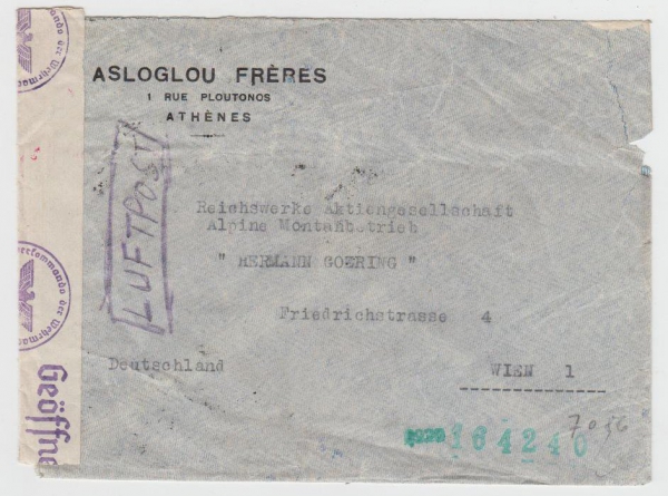 Akciová společnost HERMANN GOERING, cenzura, dopis z Řecka