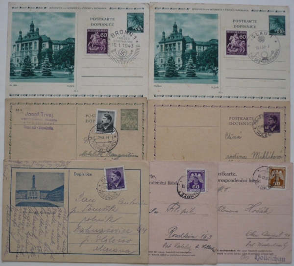 partie 7 celistvostí, mj. 2x ohlašovací lístek úřadu práce; různý stav