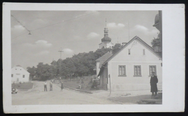 fotopohlednice, náves, lidé, věž kostela, nepoužitá, bez adresních linek, Q2