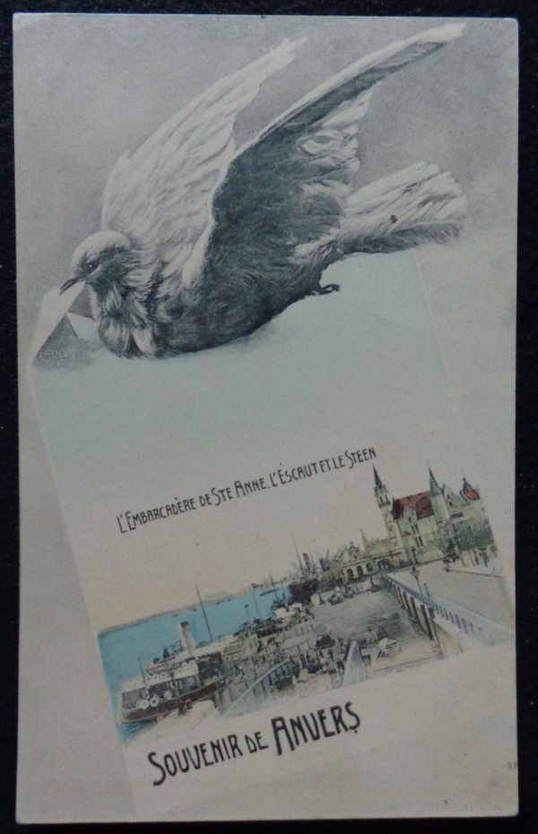 (Anvers), koláž holubice, pohled do přístavu, nepoužitá, Q1