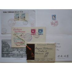 dopis z Číny z roku 1962, adresát Dagmar Veškrnová, včetně obsahu; japonský nálepní list a filatelistický dopis; Thajsko: FDC
