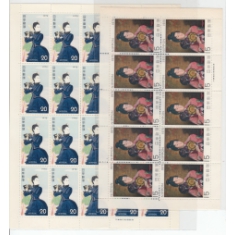 Týden filatelie (námět Umění): MICHEL 1073, celý desetikusový přepážkový list "Portrét dámy", autor S. Okada (1864-1939) + 1149, celý dvacetikusový přepážkový list "Stoupající balón", autor G. Nakamura (1890-1969); vše bezvadné, svěží