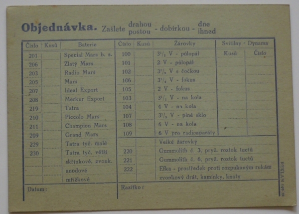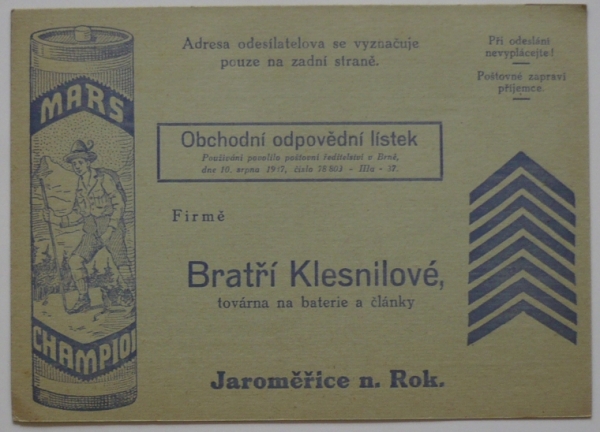 1938 Bateriové články MARS, Jaroměřice n./R.