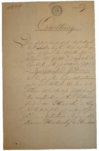 1844 Bádensko, Freiburg, listina s kolky a pečetí
