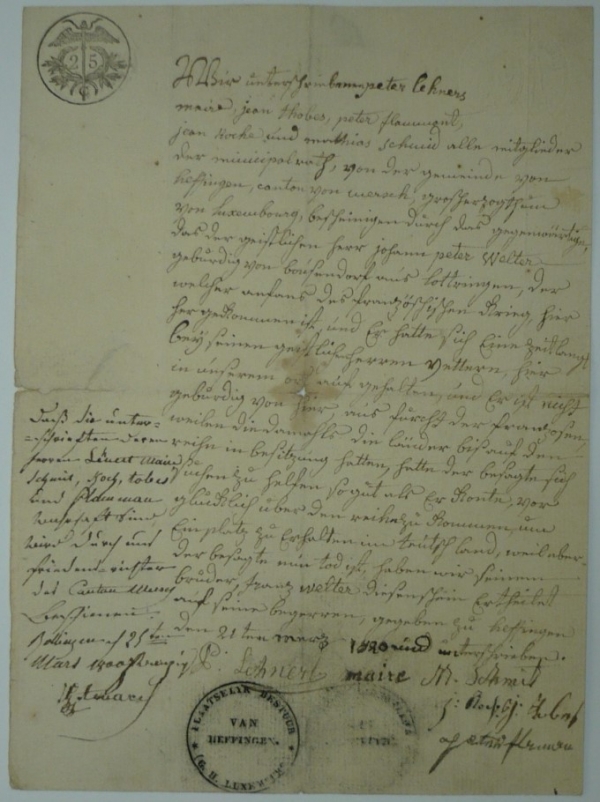 pěkná listina z Napoleonem okupované Belgie, kolky a razítka