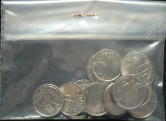 sestava 14 mincí 1F s různými letopočty: 1988, 1989 (2x), 1990 (2x), 1991 (3x), 1993 (2x), 1994 (2x), 1995 (2x)