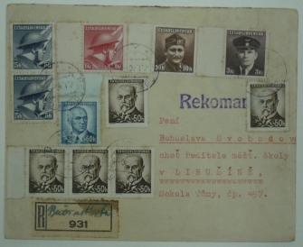 R dopis s bohatou frankaturou, provizorní R nálepka BEČOV U MOSTU; hledané