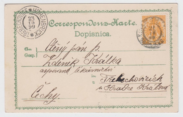 pohlednice od vojáka do Čech, podací razítko MPA SARAJEVO 21/10/99, luxusní