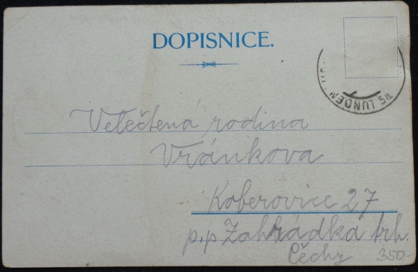 litografická koláž, náměstí, prošlá, stržená známka, dlouhá adresa, Q3 - odřená