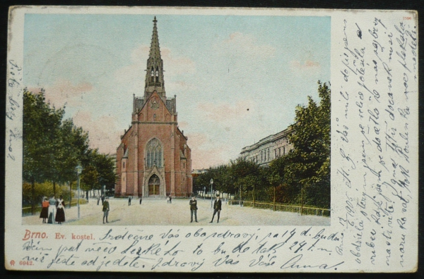 evangelický kostel, prošlá, dlouhá adresa, stržená známka, Q2