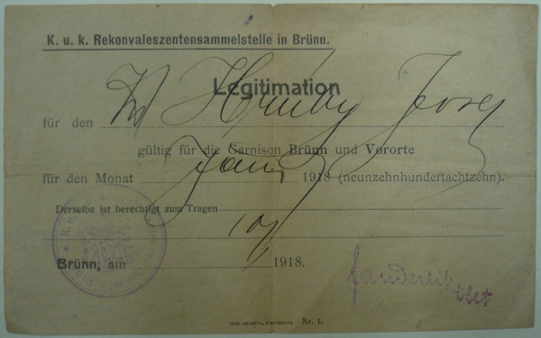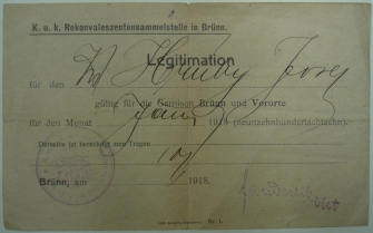 1918 Brno, legitimace rekonvalescenta
