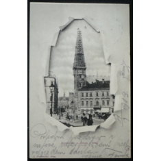 koláž "protržený papír", oprava věže Sv. Jakuba, prošlá, dlouhá adresa, Q1