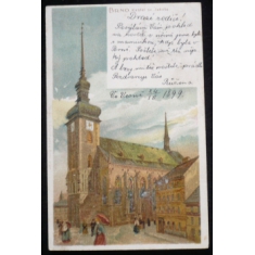 Brno, kostel svatého Jakuba, litografie, dlouhá adresa, prošlá, Q2