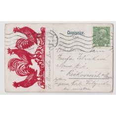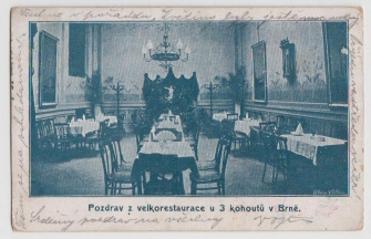 Brno, restaurace U Tří kohoutů, interiér, přítisk