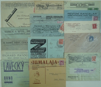 Brno, sestava 15 firemních celistvostí s přítisky