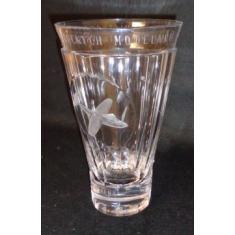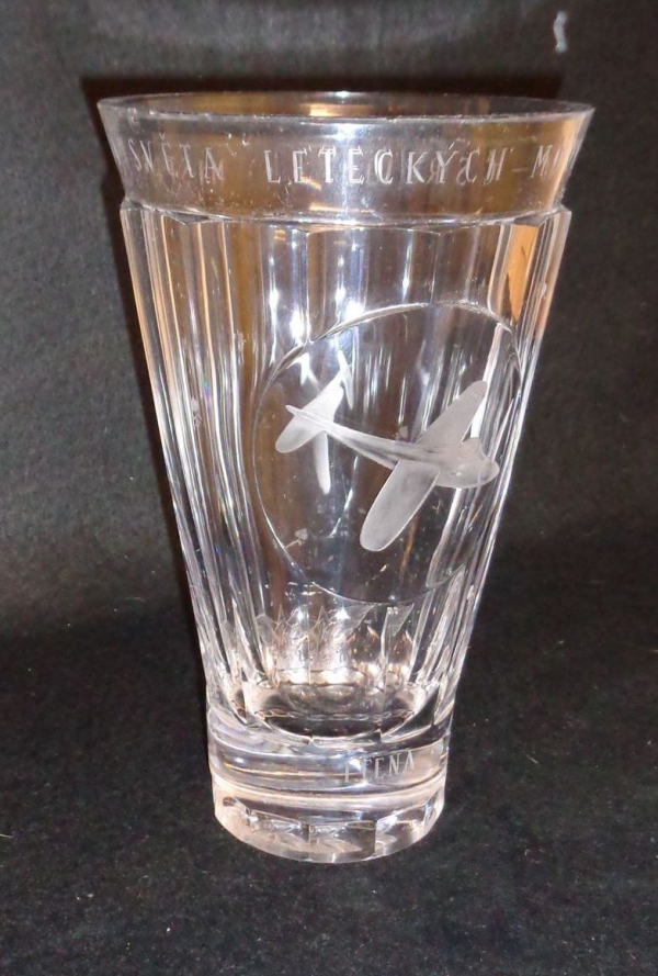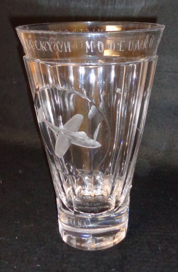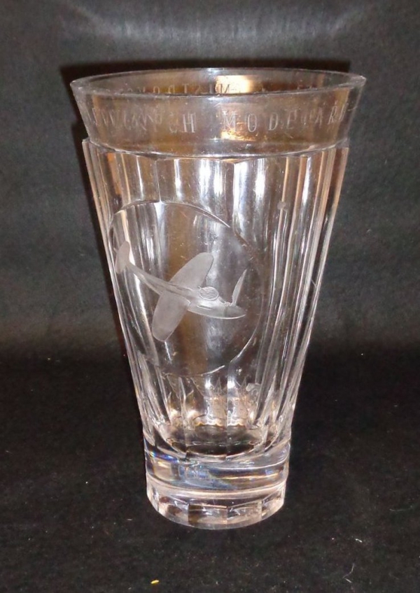 křišťálové sklo, výška 27cm, průměr 17cm; lehce naštípnutá hrana horního okraje