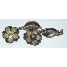 imitace šperku, žlutý kov a plast, oba kusy se zavíracím špendlíkem, ovál také s očkem