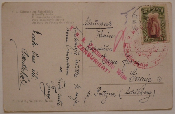 pohlednice do Gorenje prošlá bulharskou a rakouskou cenzurou