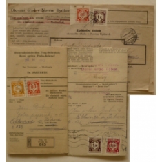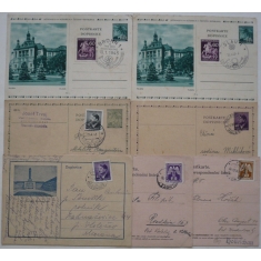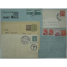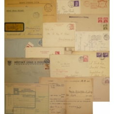sestava 15 celistvostí, obsahuje mj. frankotyp, novinové známky, R služební dopis, kašek Viktoria!!/ Vítězství!!, razítko vlakové pošty, vzorec, 2 zálepky a pohlednice ze Sudet