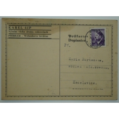 dopisnice s razítkem vlakové pošty 17.III.45, restaurace Na Sadech, Vodňany; hezké