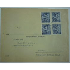 firemní dopis se čtyřblokem, DOUBRAVICE NAD SVITAVOU 17.VII.43; vzácná frankatura