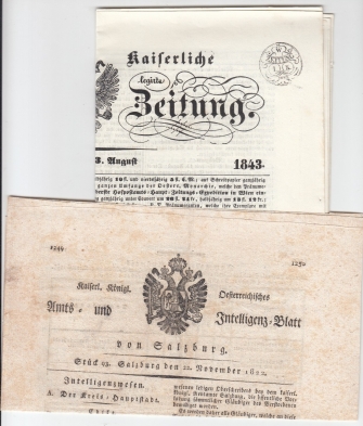 1843 Celé noviny WIENER ZEITUNG s otiskem novinového kolku W/ ZEITUNG/ 1 K