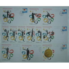 soubor 12 dopisnic s přítisky jednotlivých sportovních odvětví, v nichž Čína získala na bojkotované olympiádě zlaté medaile; luxusní stav