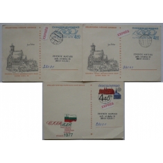 sestava 3 dopisnic, 1x odlišná barva textu, 2x přítisk ČSSR-Francie a ČSSR-Anglie