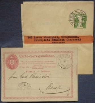 sestava 2 celin - dopisnice (1872) a novinová páska (1919)