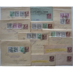 firemní obálka s přitištěnou známkou, 7x novinová páska s barevnými dofranky, 3x adresní pásky DÖAV, 2x s adresní polepkou; dobře zachovalé