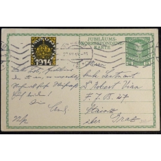 prošlá v místě, dofrankovaná známkou Franz Josef 10h červená