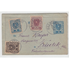 1921 Rakousko, zálepka MICHEL K57, 2K modrá adresovaná do Frýdku