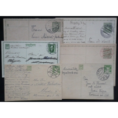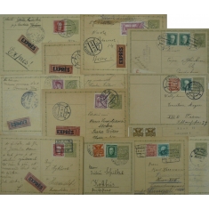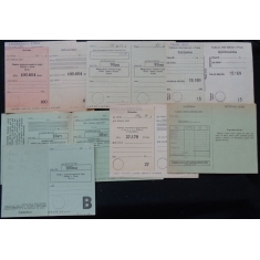 7x expres, 4x do ciziny, 2x razítko nádražní schránky, 1x TELEGRAFNÍ ÚSTŘEDNÍ STANICE PRAHA a 1x jako předběžná v době Protektorátu