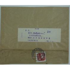 dopis na Slovensko s čs. známkou 348, 2Kč modrá, razítko HORNÍ BOBROVÁ 24.IV.39, devizová kontrola; přeloženo