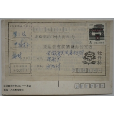 propagační pohlednice s nalepeným formulářem s čínskými znaky, razítko 1.8.90