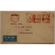 letecký dopis do Zlína na p. Baťu, frankotypy 1/2A, 4A a 5A, CALCUTTA/ C.B.I.A.C.C.-116/ 30.VII.34; hezké