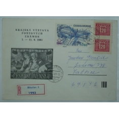 R dopis se smíšenou frankaturou doplatních známek, BŘECLAV 4.I.87, přítisk Krajská výstava poštovních známek 1983