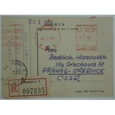 R lístek do ČSR, otisk výplatního stroje CHORZÓW 24.1.62; hezké