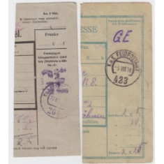 1918 Sestava 2 ústřižků průvodek, Feldpost