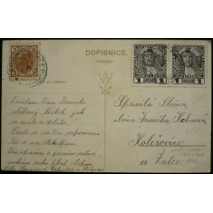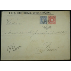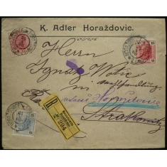 10h (2x) červená bez pruhů + 25h modrá s pruhy, razítko HORAŽĎOVICE 24/4/06; zajímavé