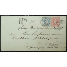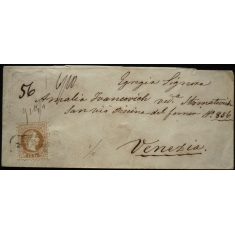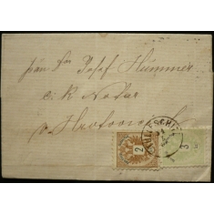 frankatura emise 1867 15Kr + 10Kr, pečetě, příchozí razítko VENEZIA; nešetrně otevřeno