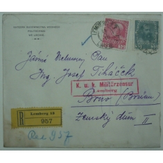 R dopis ze Lvova do Brna, razítko LEMBERG 11/7/16, rámečkové cenzurní razítko Lemberg, vzadu lehké skvrny