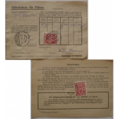 oznámení o balíkové zásilce bez balíkové průvodky, sestava 2 formulářů se známkami MICHEL 242; zajímavé