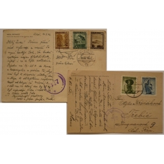 1946 Cenzura, sestava 2 pohlednic do ČSR