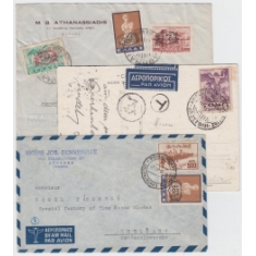 1947 Řecko, sestava 3 dopisů