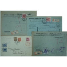 části doručovek poštovních poukázek se smíšenými frankaturami doplatních známek; hledané